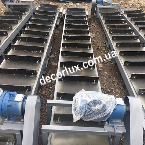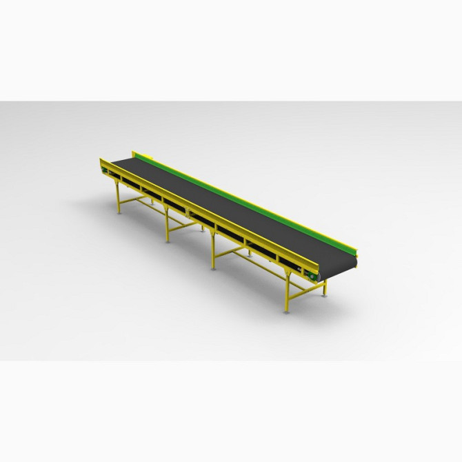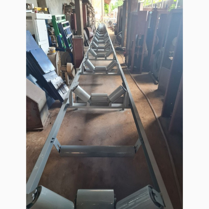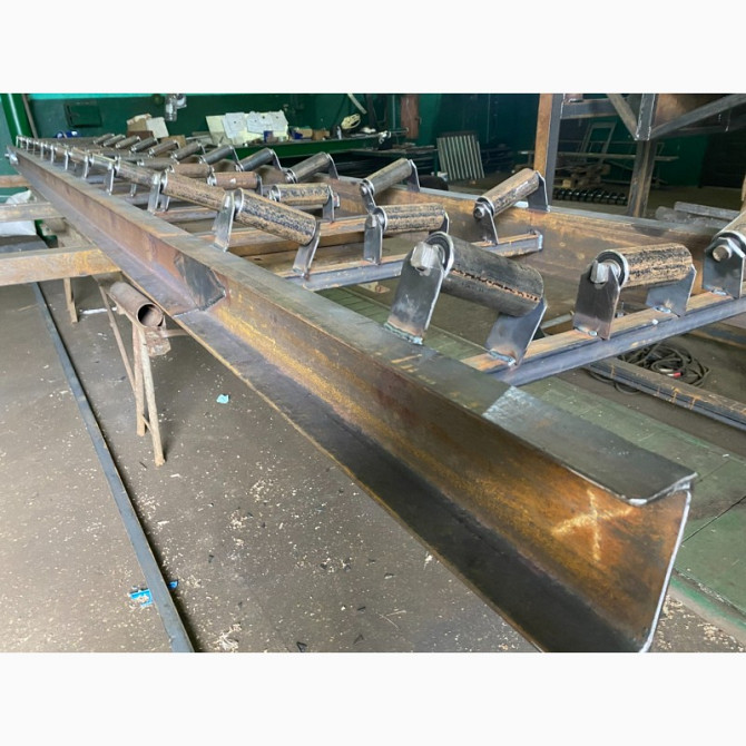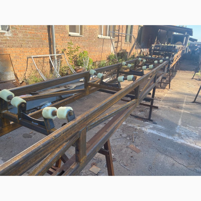 Технічний опис стрічкових конвеєрів для перевезення вантажів: - Довжина по вісям барабанів: 6000 мм; - Висота: 800 +/-50 мм; - Тип стрічки: робоча ширина 800 мм, БКНЛ 5 мм; - Конструкція рами: лист сталі 2 мм; - Стільниця: лист сталі 1,5 мм, борт - 100 мм, лист сталі 1,5 мм, ноги - профільна труба ...