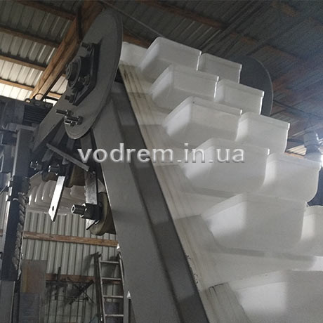 Транспортер ковшового типу використовується для транспортування різних сипучих і дрібнодисперсних матеріалів, таких як цукор-пісок, короткорізані макаронні вироби, крупи, кава в зернах, чай, цукерки, різні грануляти, побутова хімія тощо. Основне використання транспортера полягає у підйомі цих матері...