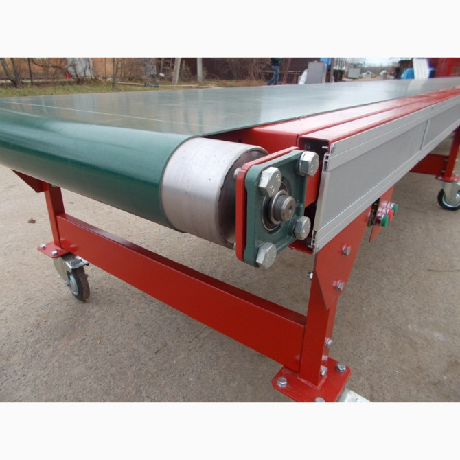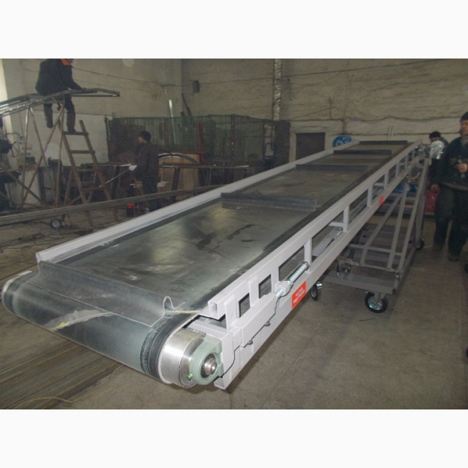 Транспортер ленточного типу є пристроєм для перенесення матеріалів, який виготовляється у вигляді жолобової, жолобчасто-роликової або прямо-роликової конструкції. Кожний транспортер складається зі стійки, привідного барабана та натяжного барабана. Вони можуть бути стаціонарними або мобільними, гориз...