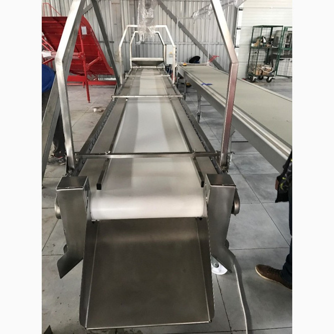 **Технічний Опис Транспортера для Сортування Продуктів** Транспортер для сортування продуктів є важливим обладнанням у промислових процесах, призначеним для автоматизованої транспортування та розподілу продукції. Цей конкретний транспортер має довжину 5 метрів та ширина ленти становить 1 метр. Осн...
