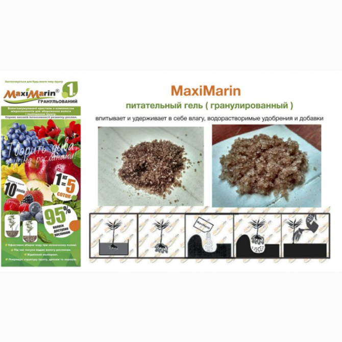 MaxiMarin гранульований - це абсорбент на основі калію, який здатен накопичувати вологу до 400 власних об’ємів і за потребою віддавати її кореневій системі рослин. Тобто це - своєрідна система автономного водопостачання і живлення рослин. MaxiMarin гранульований є ідеальним рішенням для використанн...