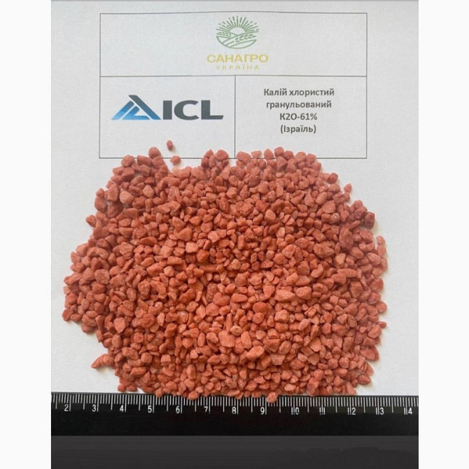 Хлористий калій гранульований (KCl) є висококонцентрованим калійним добривом. Масова частка калію в перерахунку на оксид калію (K2O) становить не менше 60%. Об'ємна маса цього продукту коливається від 0,92 до 0,95 т/м³. Гранули мають розмір від 3 до 6 мм. Упаковка - біг-бег (можливо також в мішках)....