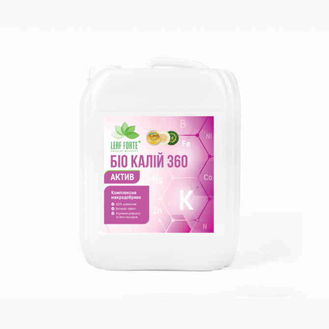 Калій впливає на регулювання водного балансу, обмін речовин, транспорт цукрів та підвищує стійкість рослин до стресових ситуацій. В поєднанні з S (сіркою) та Mg (магнієм) відповідає за утворення та налив плодів, підвищує стійкість до хвороб, підвищує якість врожаю і подовжує його лежкість. Сприяє рі...