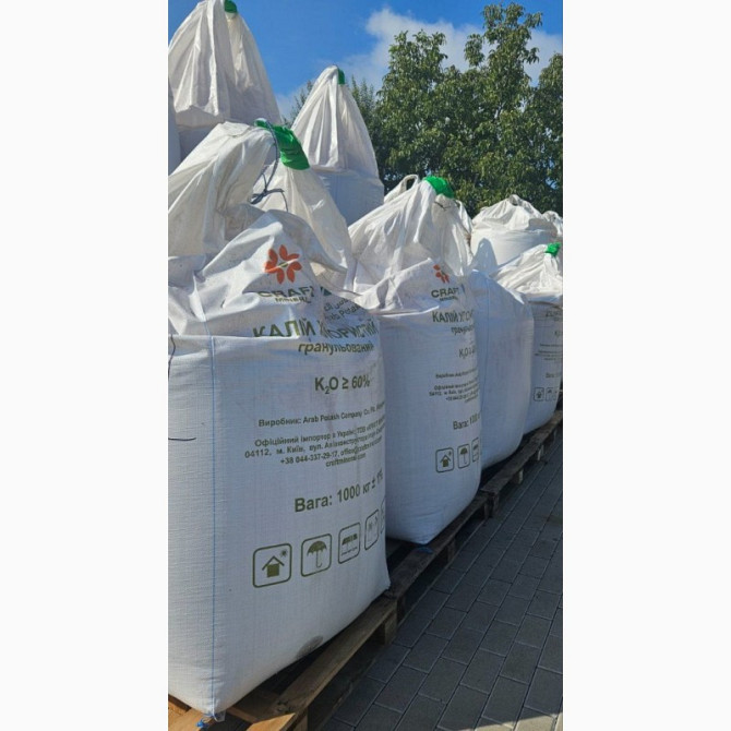 Пропонуємо до продажу калій хлористий К61% у формі біг-бегу. Ціна є орієнтовною та може змінюватися в залежності від обсягу замовлення та умов поставки. Наші склади з добривами розташовані по всій території України. Мінімальна партія становить 10 тонн, а самовивіз можливий від 5 тонн і більше. Можли...