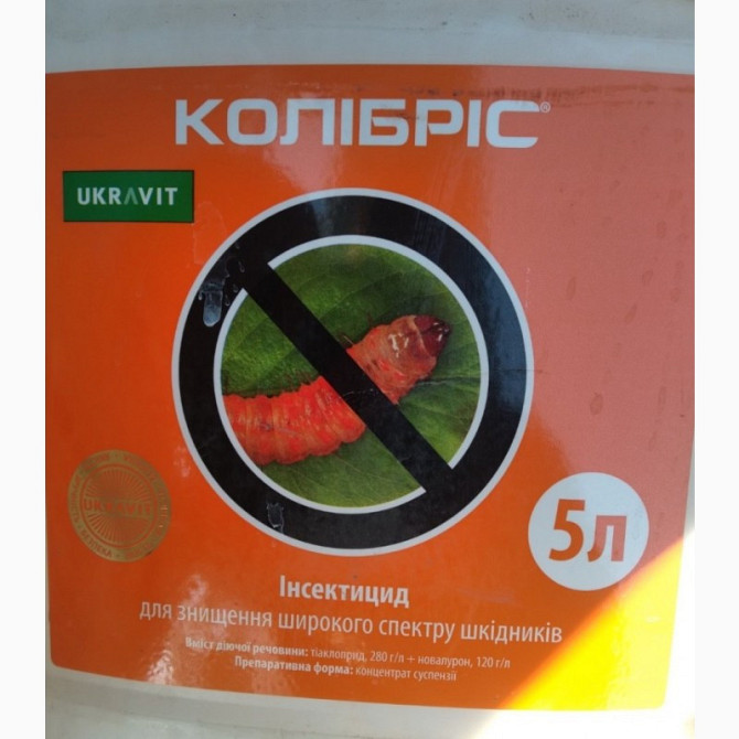 **Колібріс - Інноваційний інсектицид контактно-системної дії** Колібріс - це інноваційний інсектицид контактно-системної дії, який призначений для знищення широкого спектру шкідників у різних видів культур. Діючі речовини: Тіаклоприд у концентрації 280 г/л та Новалурон у концентрації 120 г/л. Культ...