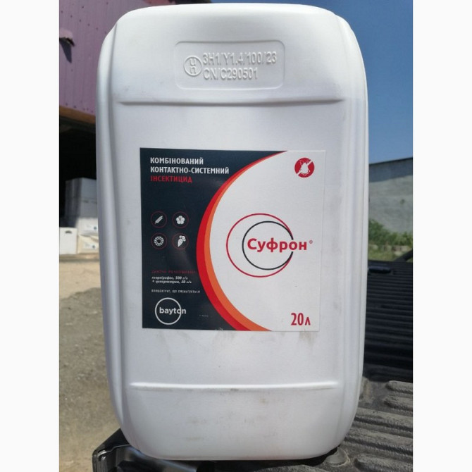 **СУФРОН - Високоефективний двокомпонентний контактний інсектицид широкого спектру дії** СУФРОН - це інсектицид з чітко вираженою системною дією, акарицидними та репелентними властивостями. Основні діючі речовини цього продукту - Хлорпірифос (500 г/л) та циперметрин (50 г/л). Випускається у формі к...