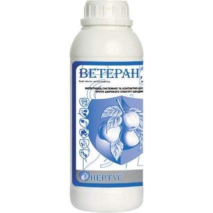 Ветеран - Інсектицид системної та контактно-шлункової дії проти широкого спектру шкідників. Діюча речовина: ацетаміприд, 200 г/л. Формуляція: водяний розчин. Виробник: Петрс енд Бург KFT, Угорщина. Тарна одиниця: каністра 1 л. Механізм дії ацетаміприду володіє системною та трансламінарною дією, зав...