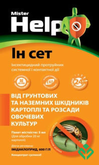 Системний інсектицид контактно-кишкової дії для обробки картопельних клубнів перед їх висадкою в ґрунт, який знищує ґрунтових шкідників і запобігає їх поширенню протягом усього вегетаційного періоду культури. Діюча речовина: імідаклоприд, 200 г/л. Препаративна форма: концентрат. Сумісність: сумісни...