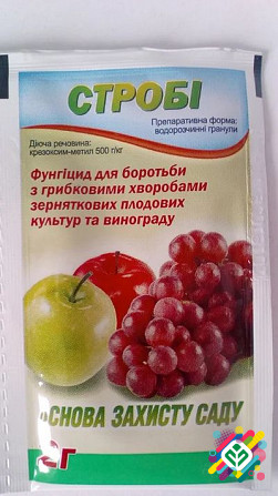 Мінімальна сума замовлення 350 грн. Препарат має фунгіцидні властивості у боротьбі з широким спектром грибкових хвороб плодових культур та винограду. Діюча речовина: крезоксим-метил. Переваги: - Має лікувальну та знищувальну дію, пригнічуючи ріст спороутворення, якщо листя вже заражене грибковою х...