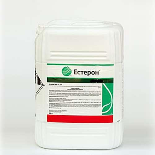 **Естерон** - це післясходовий гербіцид системної дії, призначений для застосування на посівах зернових та колосових культур, а також кукурудзи для боротьби з однорічними та деякими багаторічними дводольними бур'янами. **Діюча речовина:** 905 г / л 2-етилгексиловий ефір, 2,4-дихлорфеноксиоцтова кис...