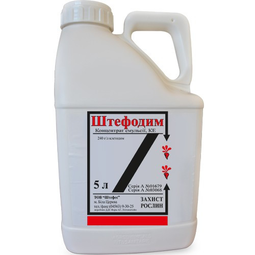 **Штефодим** **Селективний гербіцид системної дії для контролю однорічних та багаторічних злакових бур'янів на посівах цукрового буряку, соняшника, ріпаку та сої.** - **Діюча речовина:** клетодим, 240 г/л - **Препаративна форма:** концентрат, що емульгується - **Виробник:** Stefes - **Упаковка:** ...