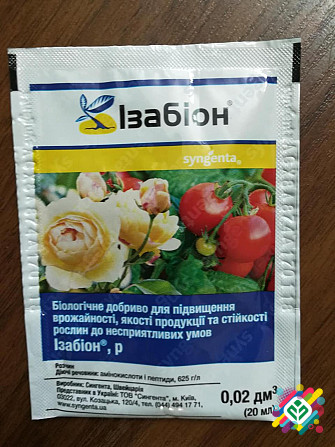Це нове сучасне біологічне добриво тваринного походження "Изабион". Воно складається з повного спектру амінокислот і пептидів, необхідних для швидкого зростання та розвитку рослин, на синтез яких рослини не витрачають додаткову енергію. Переваги препарату: - збільшується врожайність та покращується...
