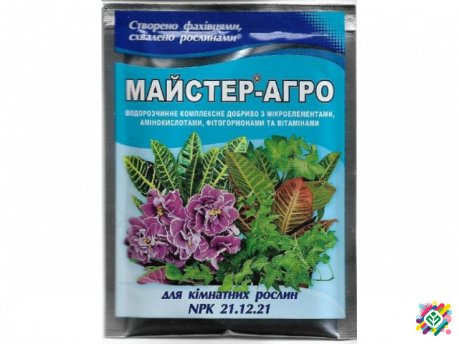 Ефективний водорозчинний, безхлорний комплексний добриво з мікроелементами у формі хелатів. Використовується для кореневого підживлення всіх видів кімнатних, балконних та декоративно-листвених культур. Склад добрива: азот (N) - 21%, фосфор (P2O5) - 12%, калій (K2O) - 21%, B, Cu, Zn, Mn, Fe, Mo. Пе...