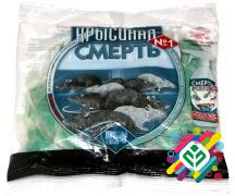 Це отруйна приманка, виготовлена у вигляді яскравих пшеничних зерен яскравого червоно-фіолетового кольору. Основна діюча речовина – отрута бромаділон, яка, потрапляючи в організм гризунів, уповільнює утворення протромбіну в печінці та знижує його рівень у крові. Така реакція гальмує механізм згортан...