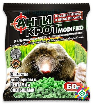 Засіб для боротьби з кротами. Для ефективної боротьби з кротами необхідно виконати вертикальний виріз в кротовині між двома вибросами землі та в обидва кінці заложити по 10-20 г приманки. Потім виріз потрібно закрити дощечкою та засипати землею. В такий виріз можна помістити водостійку трубу діамет...