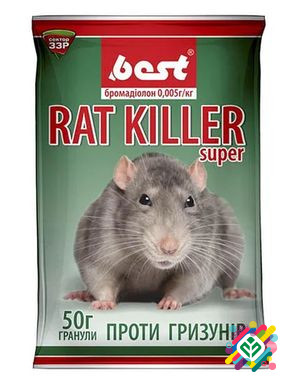 Засіб для знищення сірих і чорних пацюків, сусликів, полявок, а також домашніх мишей у житлових, нежитлових та промислових приміщеннях, сільськогосподарських угіддях та полях. Завдяки унікальній технології змішування інгредієнтів отримується однорідний за складом і зовнішнім виглядом ароматизований,...