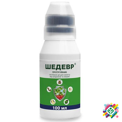 Упаковка містить 100 мл та 1 літр продукту. "Шедевр" - це найкращий інсектицидно-фунгіцидний препарат для обробки клубнів картоплі. Він надійно захищає клубні та молоді рослини картоплі від гризунів та шкідників з кусачо-сосучим ротовим апаратом, включаючи ґрунтових шкідників та хвороб росту. Діючі...