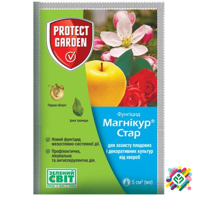 Мінімальна сума замовлення - 350 грн. Магникур Стар (Флінт Стар) є мезостемно-системним фунгіцидом з подвійним діючим речовиною та широким спектром активності для захисту яблунь від парші, мілдью та плодової гнилі, а також троянд від мілдью та ржавчини. Препарат використовується агрономами та садів...