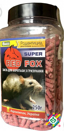 Мінімальна сума замовлення 350 грн. Упаковка: 100 г, 250 г. Препарат призначений для повного знищення популяцій гризунів (чорних і сірих крис, домашніх мишей, полевок, сусликів та інших мисливців) і для профілактики їх з'явлення. Гризуни не вмирають одразу і не встигають попередити всю популяцію шк...