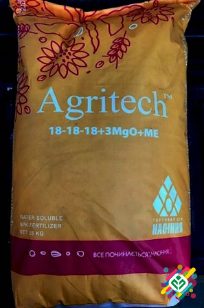 Пропонуємо вам придбати мікродобриво AGRITECH (Агрітек) 18-18-18+3MGO+ME від Терра Тарса Україна. Це універсальне добриво містить такі складові: - Фосфор 18%; - Азот 18%; - Калій 18%; - Катіони металів; - Інші елементи. AGRITECH 18-18-18+3MGO+ME - комплексне водорозчинне добриво, призначене для вир...