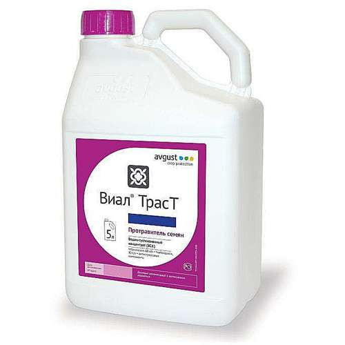 **Віал-ТрасТ®,КС** - Двокомпонентний протруйник для насіння пшениці озимої та ячменю. Препаративна форма - водно-суспензійний концентрат, що містить 60 г/л тебу-коназолу і 80 г/л тіабендазолу. Виробник - ЗАТ Фірма «Август". Упаковка - каністри 5 л, ціна вказана за 1 л. **Характеристика діючих речов...