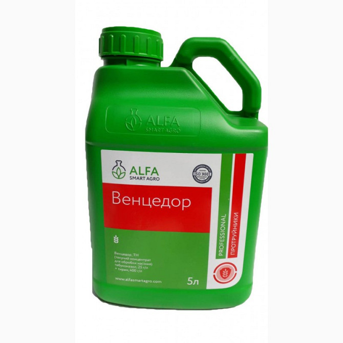 Протравитель двокомпонентний Венцедор містить у собі тебуконазол у концентрації 25 г/л та тирам у концентрації 400 г/л, призначений для обробки насіння пшениці, ячменю, проса, кукурудзи, овесу та льону. **Діючі речовини:** Тебуконазол - 25 г/л, Тирам - 400 г/л. **Формулювання:** Концентрат, що те...