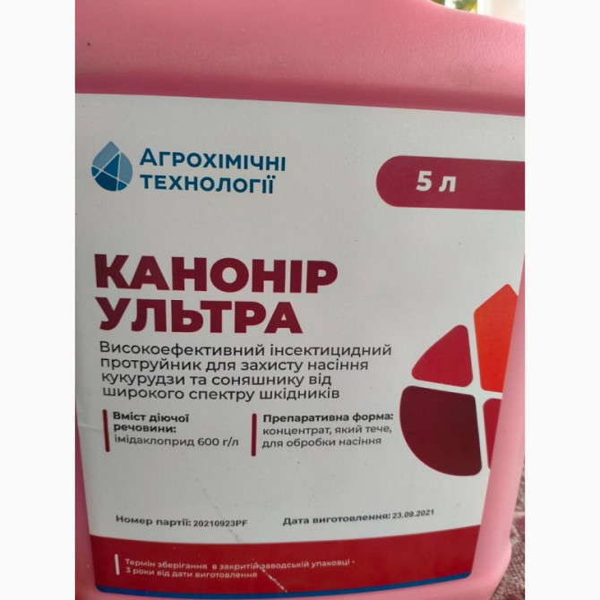 Канонір Ультра - Інсектицид для протруювання насіння. Діюча речовина: Імідаклоприд 600 г / л Хімічний клас: неонікотиноїди Виробник: Агрохімічні Технології Тип дії: Інсектицидний (від шкідників) Препарат оригінал: Гаучо Тарна одиниця: 5 л, ціна вказана за 1 л Культура: Зернові, Кукурудза, Соняшник,...