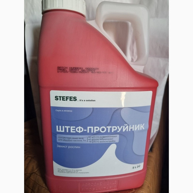 Штеф-протруйник - високоефективний трьохкомпонентний системний фунгіцид для проведення передпосівної обробки насіння озимої пшениці від комплексу хвороб. Діючі речовини: дифеноконазол - 40 г/л, тебуконазол - 40 г/л, азоксистробін - 15 г/л. Препаративна форма: концентрат, придатний для обробки насінн...