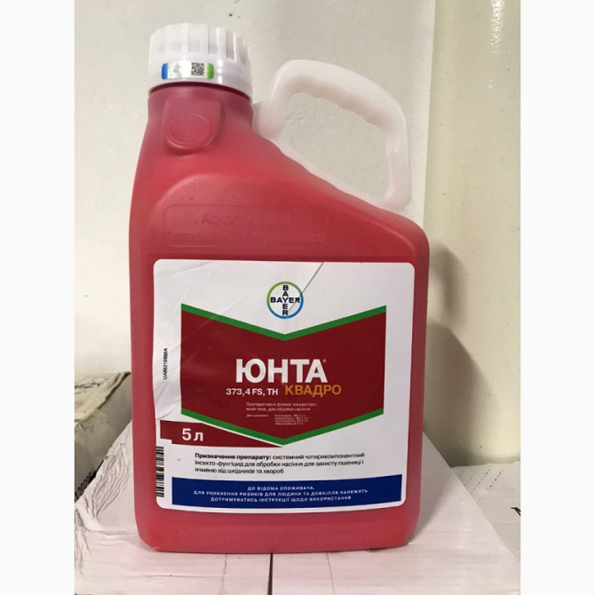 Юнта® Квадро - системний чотирьохкомпонентний протруйник комбінованої дії для зерна пшениці та ячменю проти шкідників та збудників захворювань. Діючі речовини: клотіанідин 166,7 г/л + імідаклоприд 166,7 г/л + протіоконазол 33,3 г/л + тебуконазол 6,7 г/л. Препаративна форма: концентрат, який тече, дл...