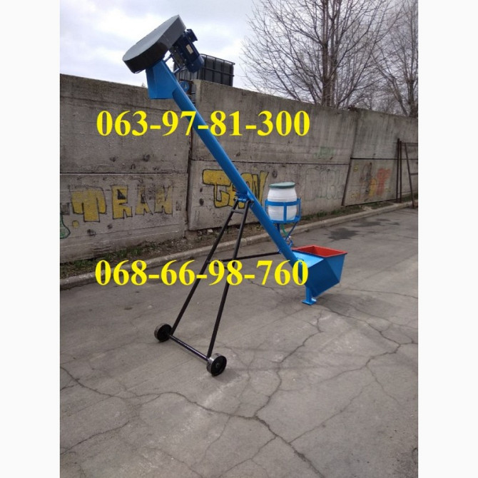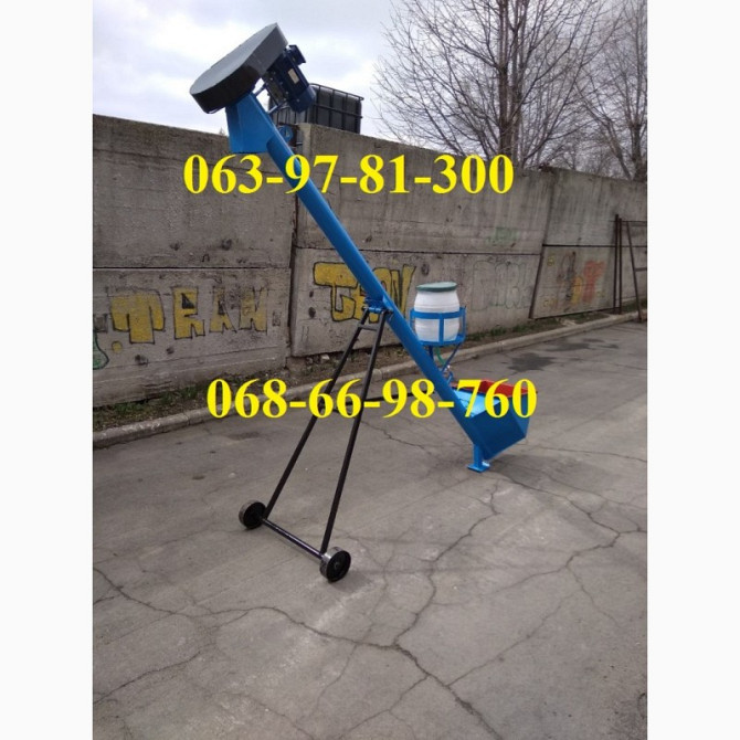 Універсальний шнек діаметром 120 мм (протравитель). Технічні характеристики: 1. Продуктивність, т/год: 1,2 (підсоняшник). 2. Потужність приводу, кВт: 1,5. 3. Частота обертання шнека, об/хв: 220. 4. Діаметр шнека, мм: 100. 5. Довжина, мм: 3450 (до 6000). 6. Кількість подач зерна регулюється шибером....