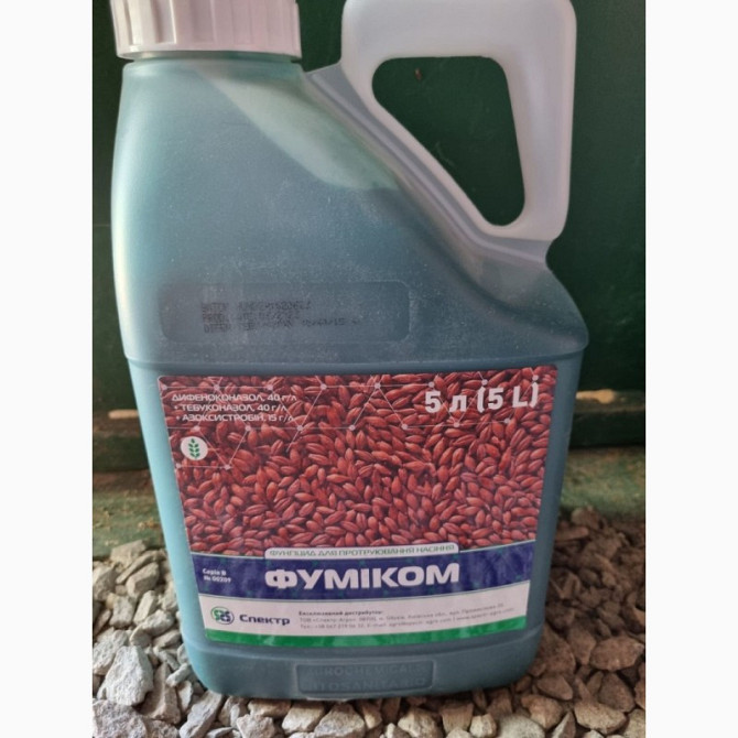 **ФУМІКОМ - високоефективний трикомпонентний системний фунгіцид для передпосівної обробки насіння пшениці та ячменю від комплексу хвороб.** **Склад:** - Дифеноконазол, 40 г/л - Тебуконазол, 40 г/л - Азоксистробін, 15 г/л **Препаративна форма:** рідкий концентрат для обробки насіння **Культура:** ...