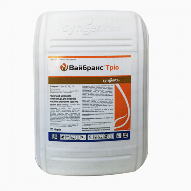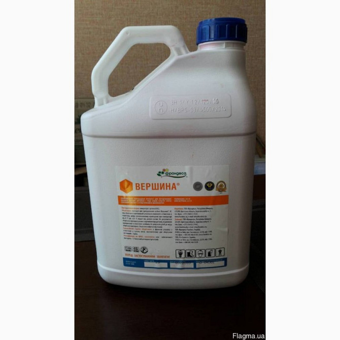 Протравитель фунгіцидної дії "Вершина" Франдеса Діюча речовина: Тебуконазол (30 г/л) + Азоксистробін (22 г/л) Препаративна форма: концентрат суспензії Хімічний клас: Тебуконазол - Триазоли; Азоксистробін - Стробілурини Клас небезпеки: 3-й Умови зберігання: в оригінальній заводській упаковці при тем...