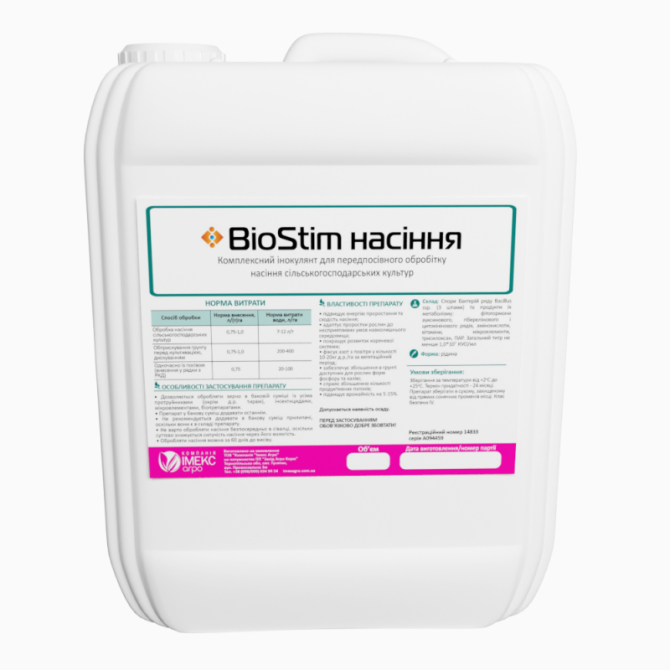 Інокулянт BioStim™ для насіння - це комплексний інокулянт, призначений для передпосівного обробітку насіння зернових культур (ярих та озимих), спрямований на досягнення максимального потенціалу культури. Склад інокулянту включає спори бактерій Bacillus polymyxa та продукти їх метаболізму, такі як ф...