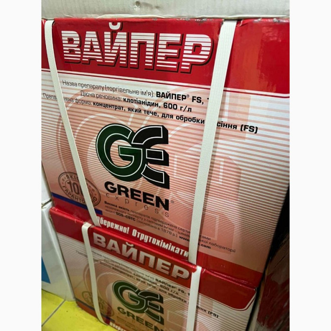 Viper FS, ТН - новітній системний протруйник для ефективного захисту проти грунтових та наземних шкідників з довготривалим захисним періодом. Діюча речовина: клотіанідин, 600 г/л. Препаративна форма: концентрат, який тече, для обробки насіння (FS). Пакування: ящик 4 каністри по 5л, ціна вказан...