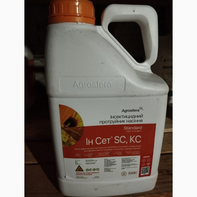 Ін Сет SC, КС - протруйник контактно-системної дії для перепосівного протруєння насіння польових культур (кукурудза, соняшник, пшениця, ріпак). Діюча речовина: імідаклопрід, 600 г/л. Упаковка: 5 л пластикова каністра, ціна вказана за каністру. Переваги препарату: - Знищення шкідників насіння та схо...