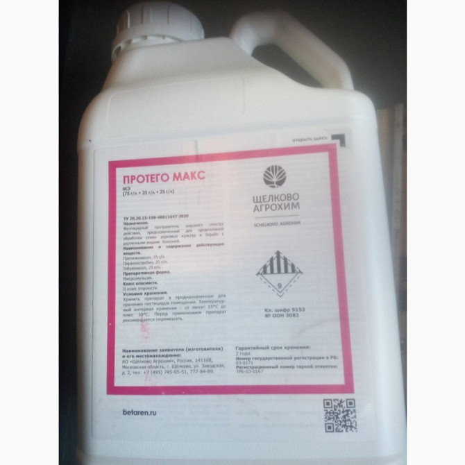 Протего Макс, МЭ - інноваційний трикомпонентний протруйник для зернових культур. Препаративна форма: Мікроемульсія. Діючі речовини: Протіоконазол, піраклостробін, тебуконазол. Концентрація: 75 г/л, 25 г/л, 25 г/л. Клас небезпеки: 2/-. Культури: Пшениця озима, пшениця ярова, ячмінь озимий, ...