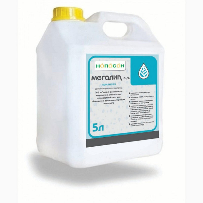 Мегаліп є поверхнево-активною речовиною, ад'ювантом, диспергатором, емульгатором, стабілізатором та транспортним агентом, який підвищує ефективність дії препаратів. Склад діючої речовини: спиртовий ефір сульфату натрію, 700 г/л. Форма випуску: водний розчин. Витрата робочої рідини: 100-300 л/га. Уп...