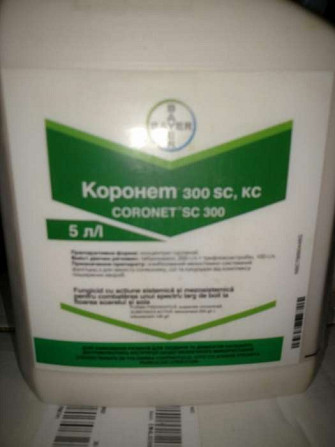 **Коронет® 300 SC, КС: Ефективний фунгіцид для захисту соняшнику, сої та кукурудзи** **Діючі речовини:** трифлоксістробін 100 г/л, тебуконазол 200 г/л **Препаративна форма:** концентрат суспензії **Виробник:** Баєр (Bayer) **Тара:** 5 л каністра, ціна вказана за 1 л **Переваги Коронет® 300 SC, ...