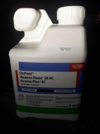 **Опис та характеристики:** **Фунгіцид Аканто Плюс, 5 л, Du Pont (Дюпон), США** Аканто Плюс - двокомпонентний фунгіцид на основі стробілуріну з вираженим фізіологічним ефектом для захисту багатьох культур. **Діюча речовина:** 200 г/л пікоксистробін; 80 г/л ципроконазол. **Форма препарату:** конц...