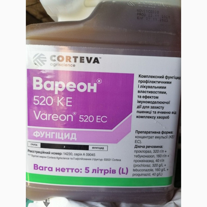 **Вареон® 520 к.е. - Трьохкомпонентний фунгіцид з ефектом імуномодулюючої дії** *Опис продукту:* Вареон® 520 к.е. є трьохкомпонентним фунгіцидом з ефектом імуномодулюючої дії, призначеним для професійного захисту зернових культур від основи стебла до колосу. Цей продукт забезпечує ефективне та ком...
