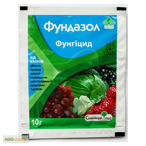 **Фунгіцид Фундазол** **Виробник:** АГРО-КЕМІ КФТ, Угорщина **Ціна:** 10 г - 13,80 грн **Діюча речовина:** беноміл, 500 г/кг **Препаративна форма:** смачиваючий порошок **Механізм дії:** поглинання беноміла відбувається листями та корінням з переважним переміщенням вгору **Призначення препарат...