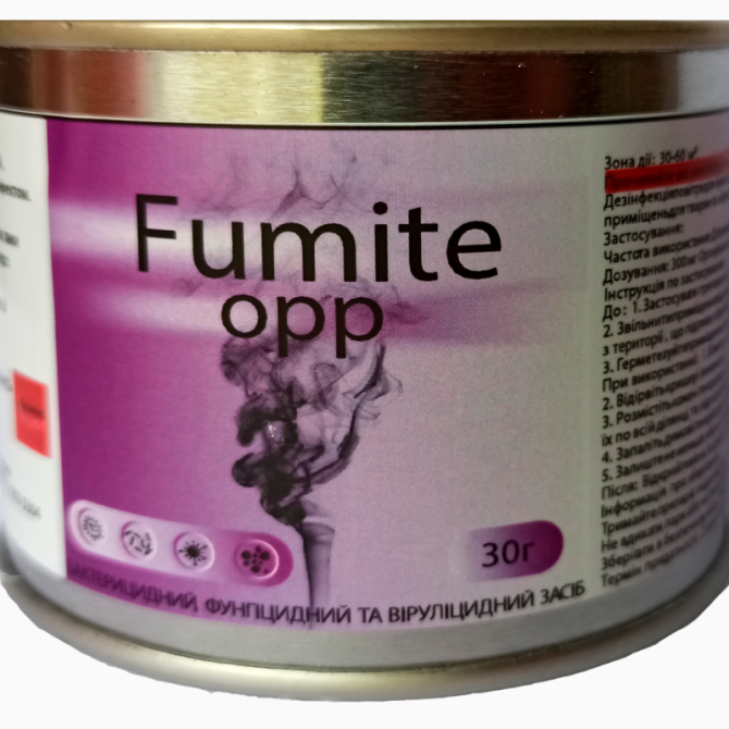 2-фенілфенол є універсальним дезінфікуючим засобом для поверхонь, який використовується в домашніх, медичних, сільськогосподарських, комерційних та промислових приміщеннях, зокрема на підприємствах харчової промисловості. Fumite OPP - це сухий дезінфікуючий дим, який ефективно бореться з бактеріями,...