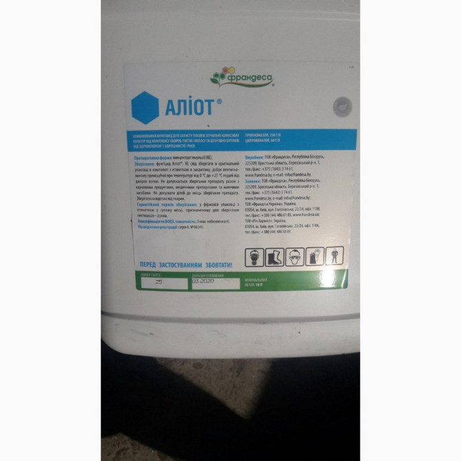 Аліот - це комбінований фунгіцид, який використовується для захисту зернових і колосових культур, а також для цукрових буряків. Діючі речовини: пропіконазол, 250 г/л + ципроконазол, 80 г/л. Хімічна група: Триазоли. Препаративна форма: Концентрат емульсії. Клас токсичності: Класифікація ВООЗ: 3. Норм...