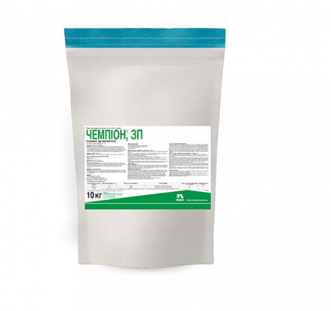 **Фунгіцид "Чемпіон"** **Діюча речовина:** гідроксид міді, 770 г/кг **Препаративна форма:** порошок, що змочується **Для культур:** Виноград, Яблуня, Помідори **Проти хвороб:** Парша, Мілдью, Фітофтороз, Плямистість, Чорна плямистість **Виробник:** Нуфарм (Nufarm) **Упаковка:** 10 кг, ціна вка...