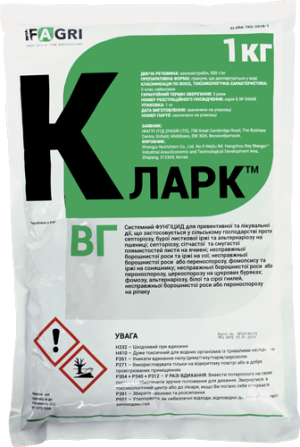 Кларк є системним фунгіцидом широкого спектру дії, який застосовується у сільському господарстві для профілактичних та терапевтичних заходів. Він ефективний проти таких хвороб, як септоріоз, бура листкова іржа та альтернаріоз на пшениці; септоріоз, сітчаста та смугаста плямистість листя на ячмені; н...