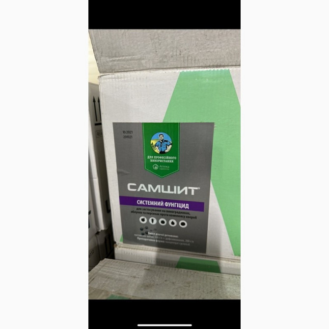 Самшит - системний фунгіцид від комплексу хвороб яблунь, персиків і виноградників. Діючі речовини: крезоксім-метил, 100 г/л, дифеноконазол, 200 г/л. Препаративна форма: концентрат суспензії. Культури, на які застосовується: яблуня, персик, виноград, томати, картопля. Норми витрати робочого розчину: ...