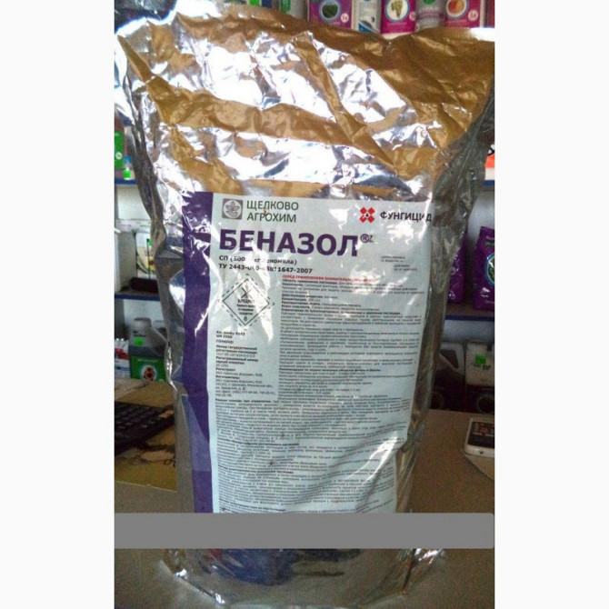 **БЕНАЗОЛ® - Універсальний фунгіцид системної та викорінюючої дії** Беназол призначений для захисту зернових, овочевих та інших сільськогосподарських культур від широкого спектру хвороб. Діюча речовина: 500 г/кг беномілу. Препаративна форма: Змочуючий порошок. Клас небезпеки: 2 клас небезпеки, речо...