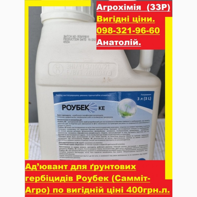 Розпродаж! Суперціна! Прилипач Ад'ювант Роубек Самміт Агро - 400 грн/л. Роубек є одним з ад'ювантів, який адаптований для використання в сільському господарстві та в культурах картоплі разом з ґербіцидами, які мають дію на бур'яни у ґрунті. При застосуванні препарату: поліпшується рівномірність пок...