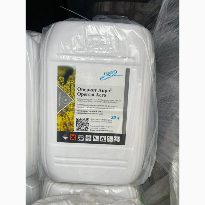 **Оперкот Акро к. с. - інсектицид** **Виробник:** Хімагромаркетинг **Препаративна форма:** концентрат суспензії **Діючі речовини:** імідаклоприд 300 г/л та лямбда-цигалотрин 100 г/л **Характеристика:** Оперкот Акро - високоефективний інсектицид системного, контактного та контактно-кишкового дії ...