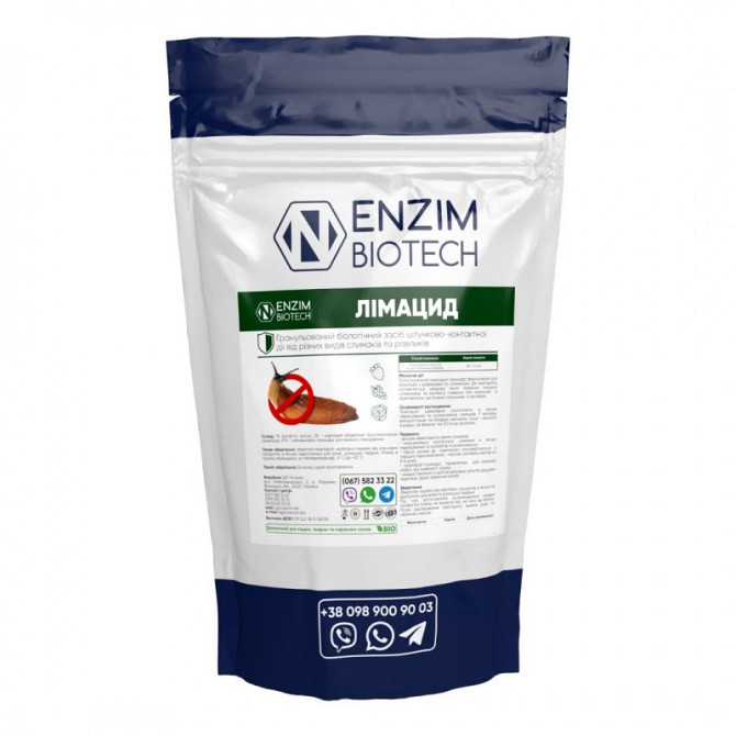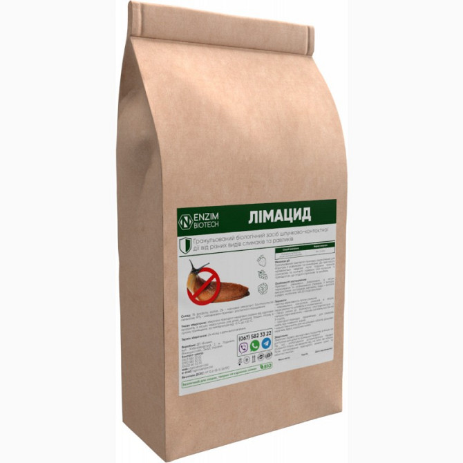 Лімацид - гранульований біологічний препарат-принада, розроблений для боротьби з равликами та слимаками шляхом застосування принципів біологічного контролю. Дія препарату проявляється швидко після поїдання гранулами слимаками та контакту їх тіла з препаратом. Активна речовина препарату - фосфат залі...